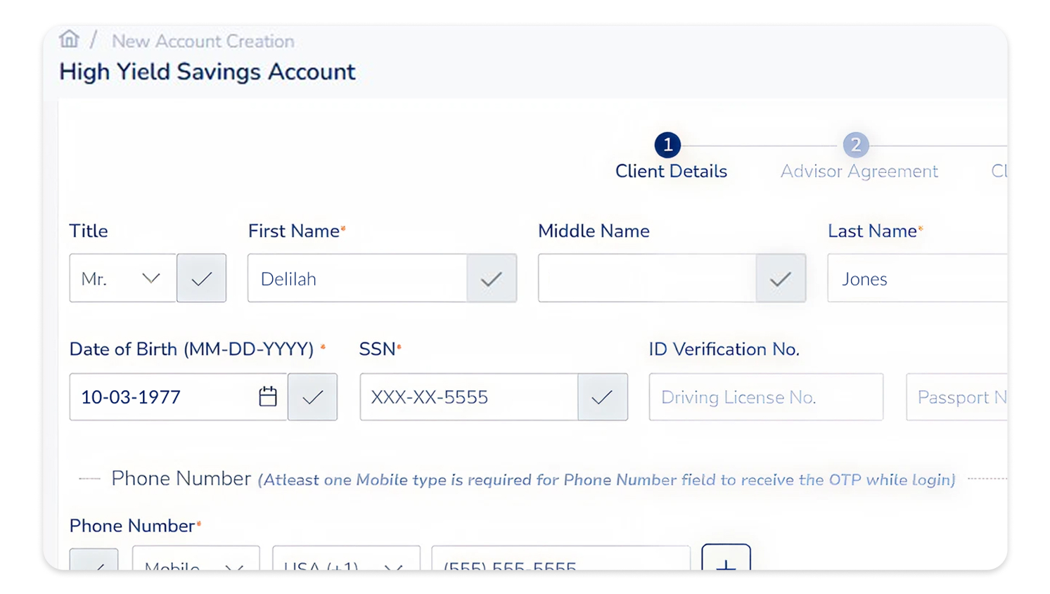 This streamlined workflow improves efficiency, minimizes not-in-good-order (NIGO) applications, and allows advisors to focus on delivering a seamless, advisor-led banking experience for their clients.